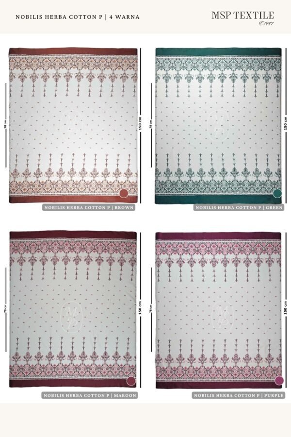 Katun Nobilis Herba Print 30s merupakan salah satu kain yang sangat popular dan sering digunakan untuk berbagai jenis pakaian. Kain ini memiliki karakteristik motif print dua sisi pinggiran atas dan bawah, memberikan tampilan yang cantik, indah dan sangat nyaman dipakai. Cocok untuk berbagai aktivitas dan dapat digunakan berbagai gender atau unisex, mulai dari bayi, anak-anak, hingga orang dewasa.