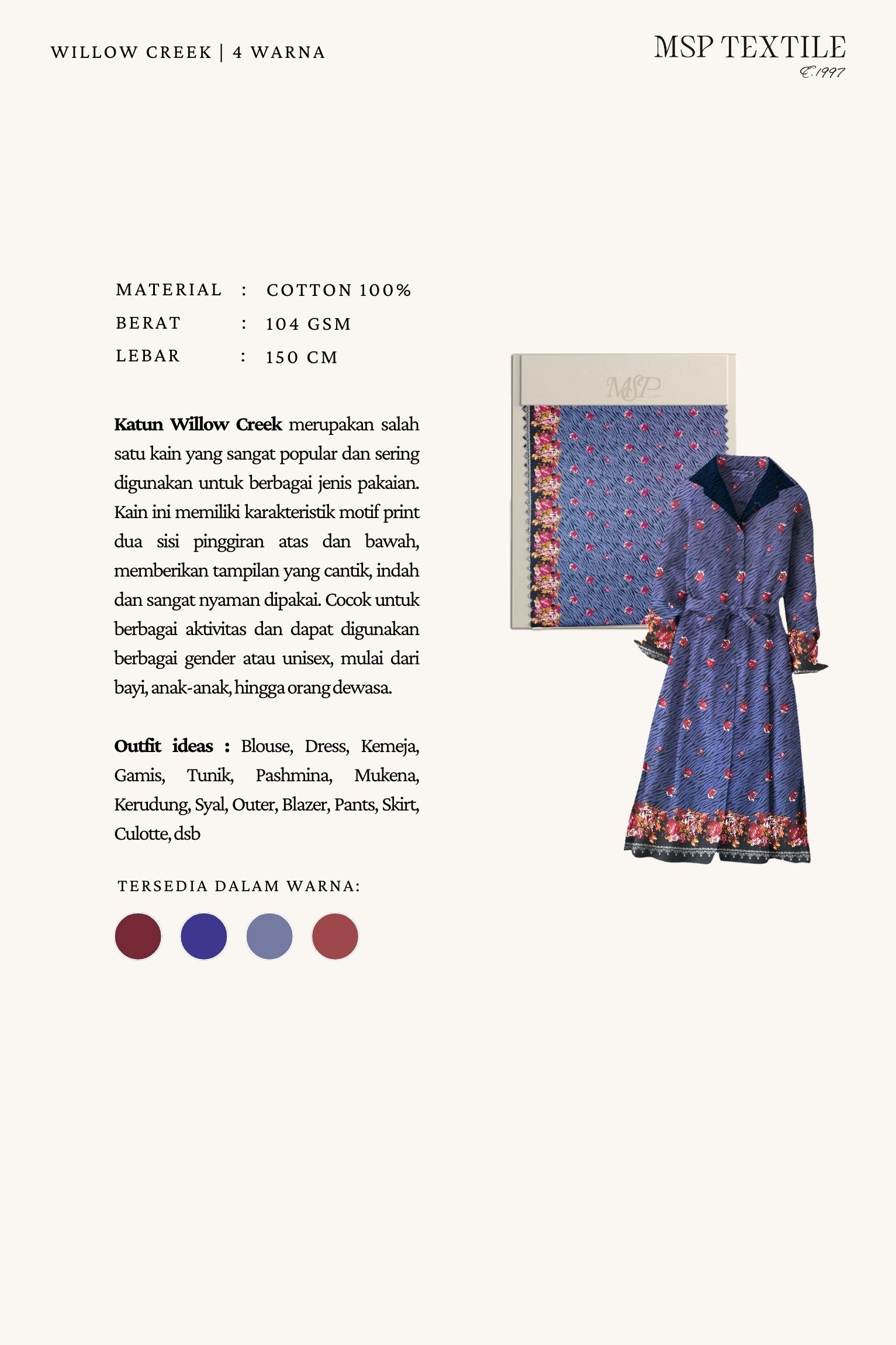 Kain Katun Willow Creek Print Dua Sisi Baju Tidur Gamis Tunik Dress Kemeja Celana Rok Blazer Outer
